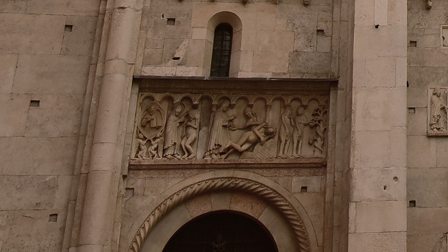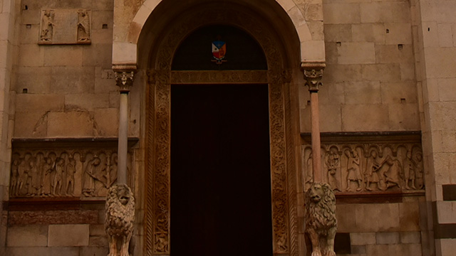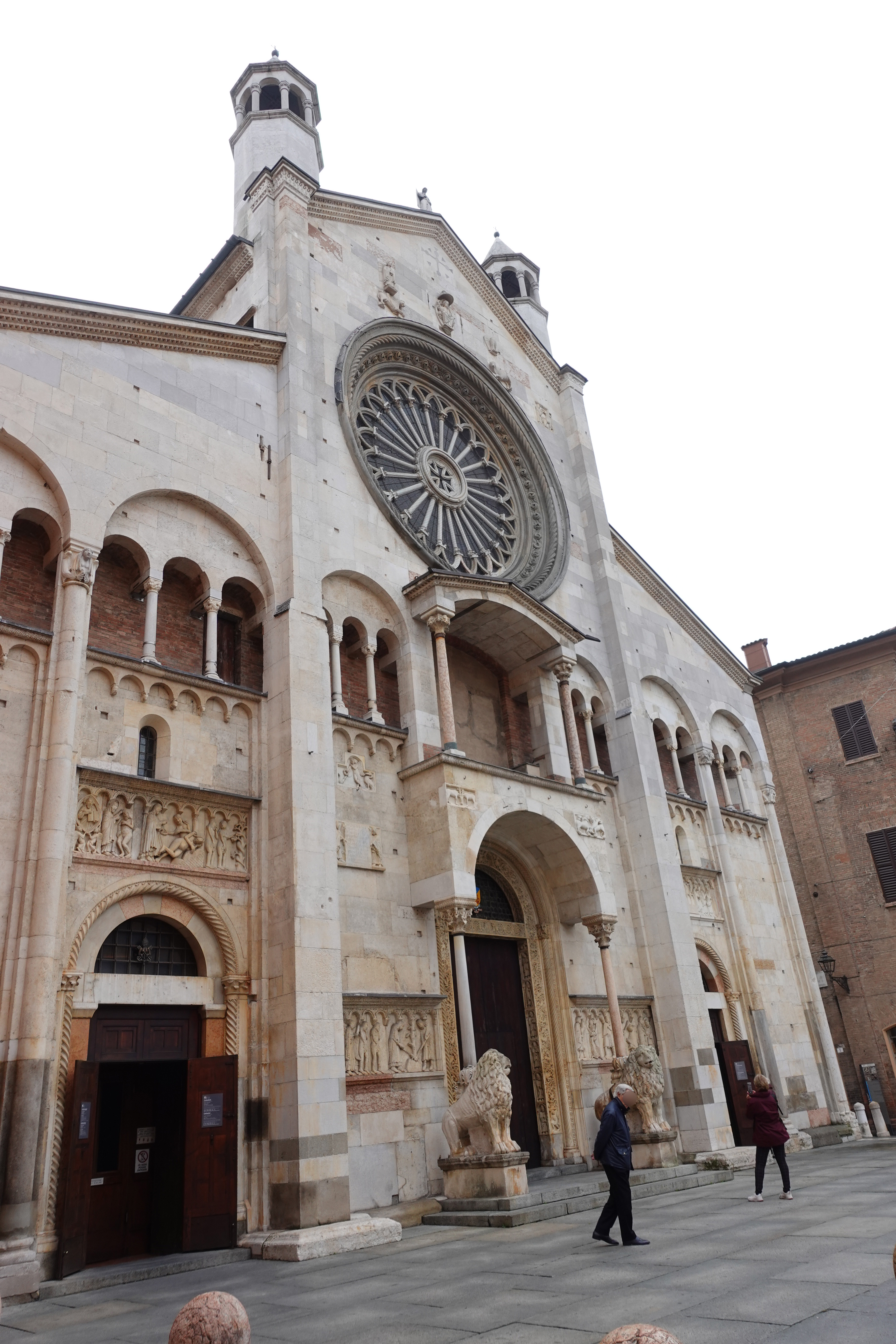 モデナ大聖堂はロマネスク様式の傑作とされる建物で、ゴシックのような華やかさはありませんが、素朴な装飾が目を引きます。