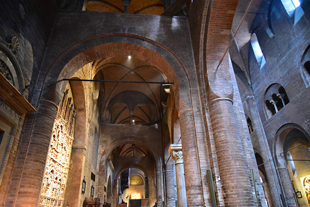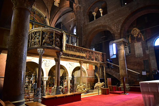 正面奥(内陣)が一段高くなっており、その一番手前にポンティーレ(pontile)と呼ばれる、桟橋のような?、バルコニーのような?ものがありました。わたしの知識不足かもしれませんが、珍しい構造だなぁっと思いました。