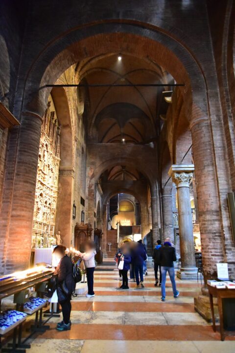モデナ大聖堂とギルランディーナの塔は、「モデナの大聖堂、トッレ・チヴィカおよびグランデ広場」としてユネスコ世界遺産に登録されている、街を象徴する存在です。ロマネスク様式の大聖堂は、創世記を描いた彫刻や三廊式の内部空間、クリプタに安置された守護聖人サン・ジェミニアーノの石棺など、見どころが豊富でした。