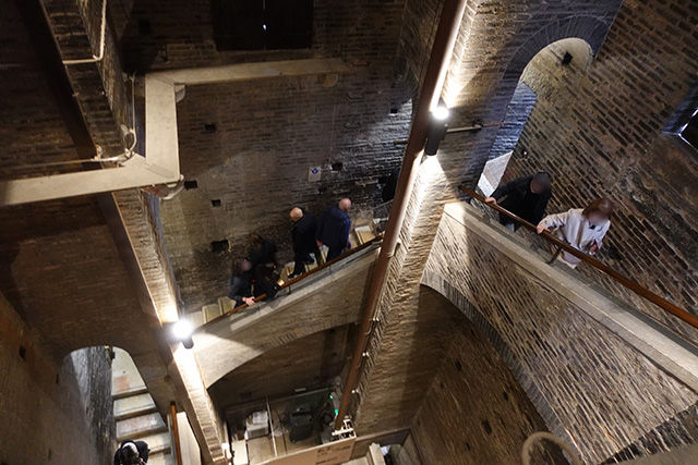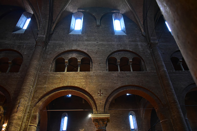 連なるアーチと採光が造り出す陰影が劇場演出のようでした。