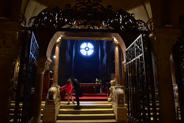 一番奥は半地下になっていました。半地下から見上げたバラ窓の光が美しい。