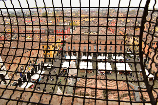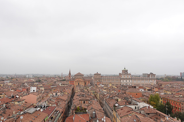 展望室の窓からはモデナの旧市街が見渡せます。ドゥカーレ宮殿も見えました。